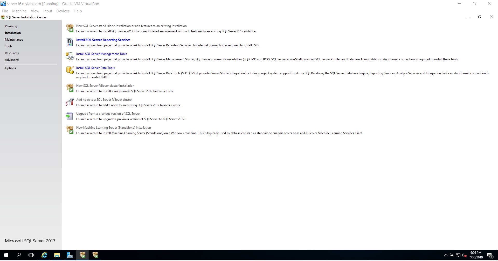 Installing SQL Server 2017 on Windows Server 2016