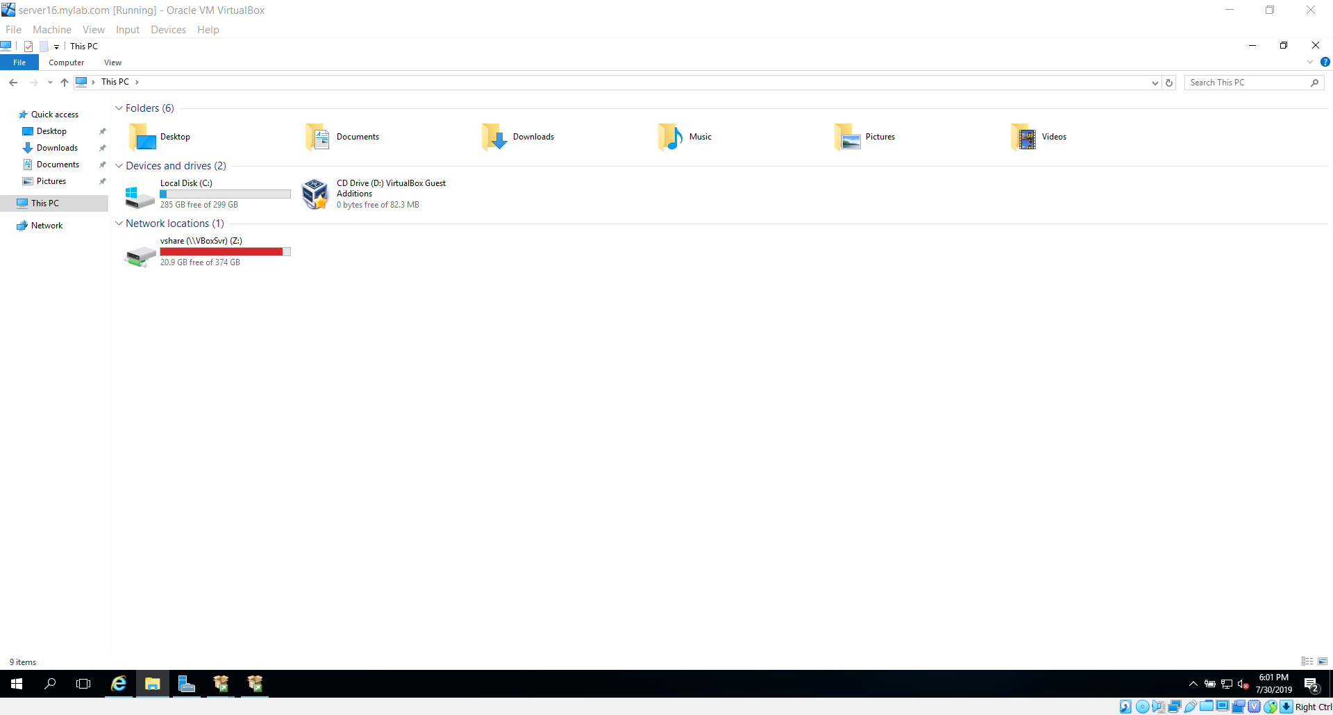 I have already spun up a virtual machine with Windows Server 2016 on it. I am using Oracle Virtual Box for virtualization tool, you can use any of your favorite tool for the purpose.